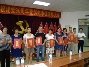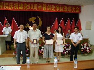 党委关于庆祝建党90周年暨创先争优表彰工作的决定。本年度共评选出优秀党支部、优秀党务工作者、三育人优秀党员、科技创新优秀党员、学生党员成才标兵等多项荣誉称号。于雅琴向获奖党支部及党员个人表示祝贺,并希望广大党员同志起到模范带头作用,以实际行动推动学校和学院各项事业的发展。紧接着,与会领导为受表彰支部及党员个人颁发荣誉证书并合影留念。