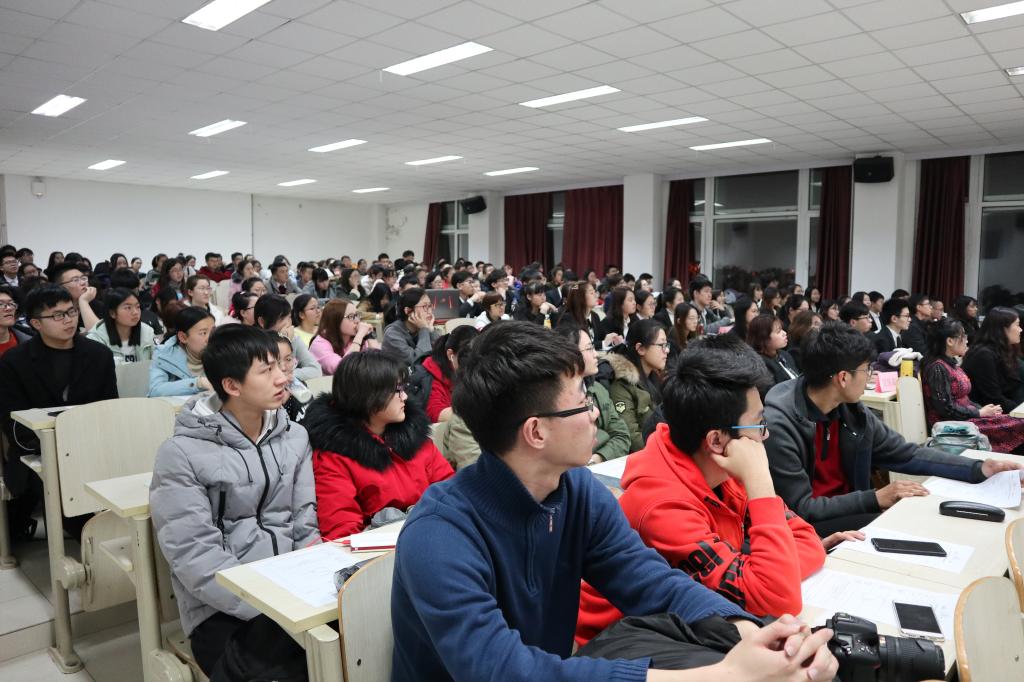 晚上六点,会议正式开始。首先,学生会主席迪丽娜尔·艾尔肯、团委副书记由婷婷及社联主席李笑丛先后上台进行发言。她们分享了自己在团学组织中的经历,及在学生会工作的经验和收获的成长,同时也对2017级新生报以殷切期望,希望他们能积极参与团委学生会,努力工作,不断锻炼充实自己,不让青春留有遗憾。随后,团学组织的十六个部门按照抽签顺序依次上台演讲,为自己的部门进行宣传。各个部长副部长运用精心准备的ppt和视频,或温馨,或幽默,向2017及学生介绍了部门职能、成员组成和纳新要求等基本信息。他们精彩纷呈的演讲,将本次宣讲会推向一个又一个高潮,也给与会学生留下了深刻的印象,更加坚定了学生加入团学组织的决心。最后,学生会主席对本次宣讲会进行了总结,再次表达了对新生加入团学组织的殷切期盼。