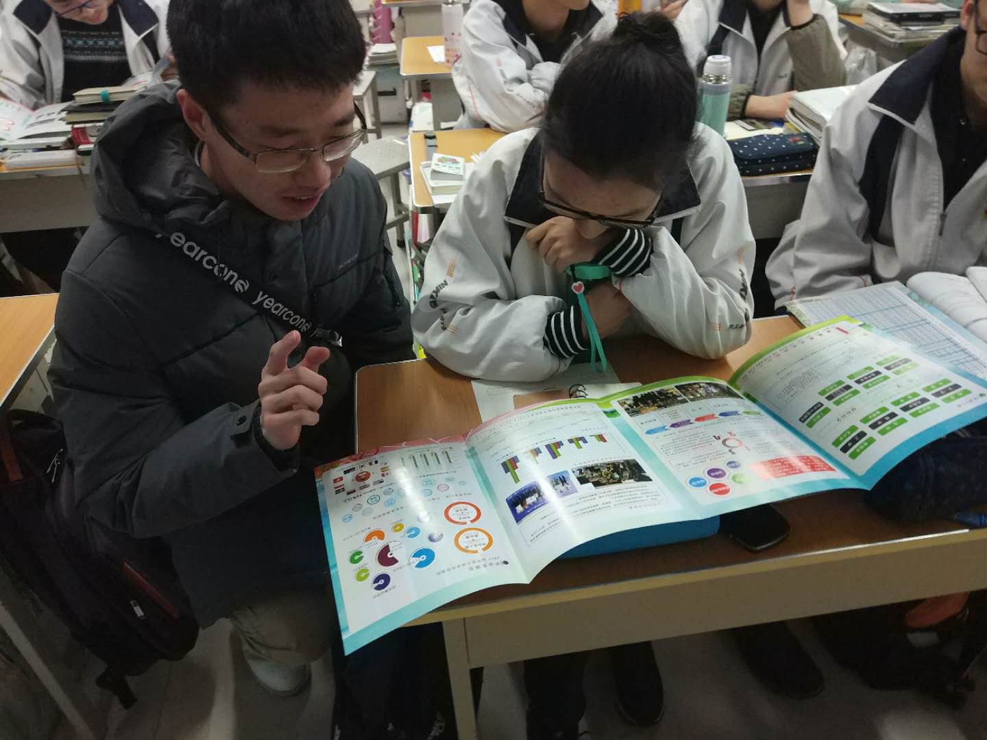 团委负责人霍睿、学生会主席暨招生宣讲团负责人迪力娜尔·艾尔肯同学带领的,由7名新疆籍维吾尔族学生、2名新疆籍汉族学生组成的实践团队展开了活动。不少当地高中生对吉林大学产生了浓厚的兴趣,表示有意报考吉林大学,并积极询问了报考细节。