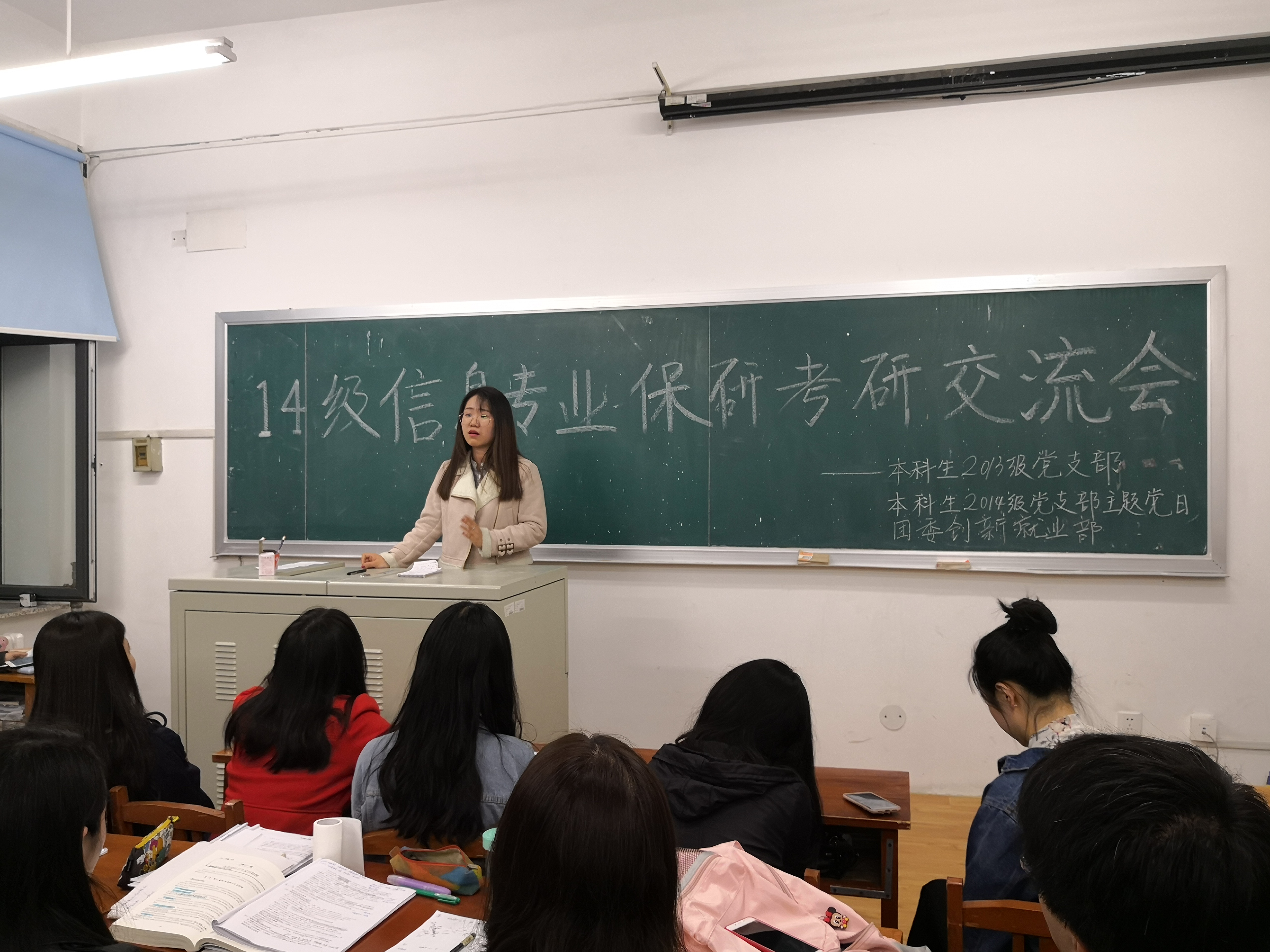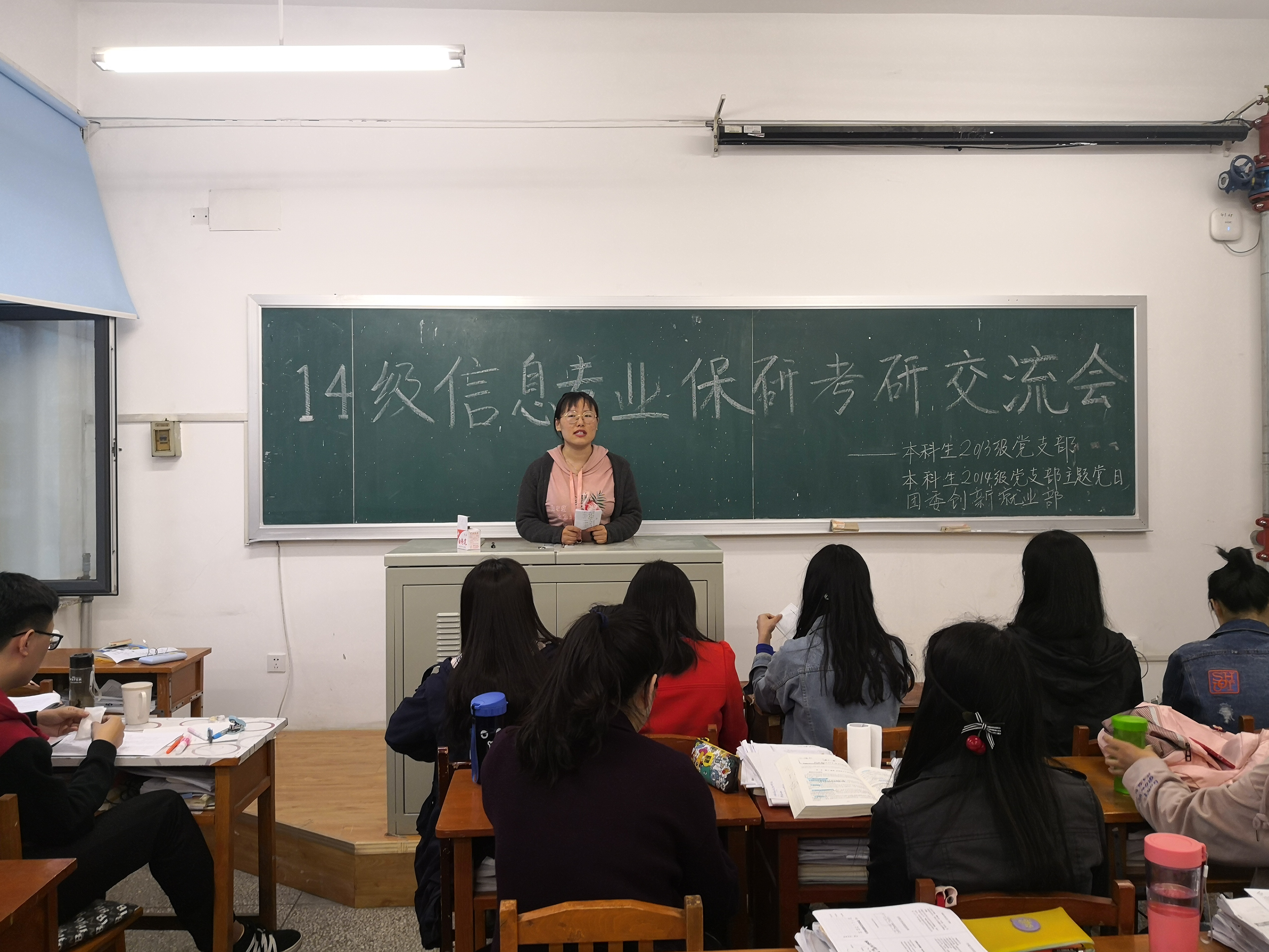 2013级本科生党支部、2014级本科生党支部与学院团委创新就业部于新民校区第一教学楼404教室联合开展了针对2014级医药信息管理专业本科生的保研、考研经验交流会。2014级医药信息管理专业全体同学、2015级和2016级部分同学参加了此次会议。同学们热情高涨,表现出了大家对考研、保研相关事情的重视。