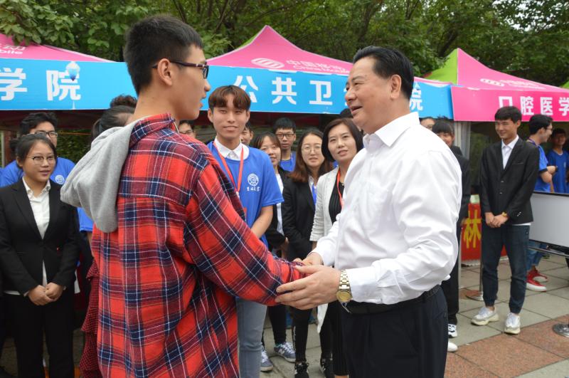 迎新现场,慰问参与迎新工作的师生,与大家亲切握手交流并对大家辛勤的付出表示感谢。一名刚刚办理完入学手续的新生想与校长合影留念,校长欣然同意并热心询问他入学报道的情况。此外,校长还叮嘱新生和志愿者们雨天要注意保暖,以防生病。随后,李校长在了解迎新工作的基本情况之后,对学院的工作给予了高度肯定,并与捕鱼游戏赚钱