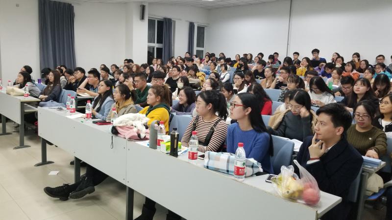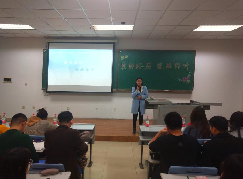 首先,霍睿老师向在场的同学们简单介绍了2014级优秀学生代表的基本情况,并向她们的到来表示热烈的欢迎。随后,2014级优秀学生代表们依次上台向同学们介绍和分享自己的研究生推免经验,有的谈到了如何参加拟报考学校的夏令营获得推免资格;有的谈到了如何联系到适合自己研究方向的导师;有的谈到了具体的复习和考试经验。与此同时,她们都强调了平时认真学习和积累知识的重要性,鼓励同学们制定科学的复习计划,形成自己的知识框架,有条不紊地学习。从她们精心准备的幻灯片和现场认真恳切的言辞中,在场的同学们不仅获得了宝贵的学习经验,还端正了自己学习的态度,明确了学习方法。