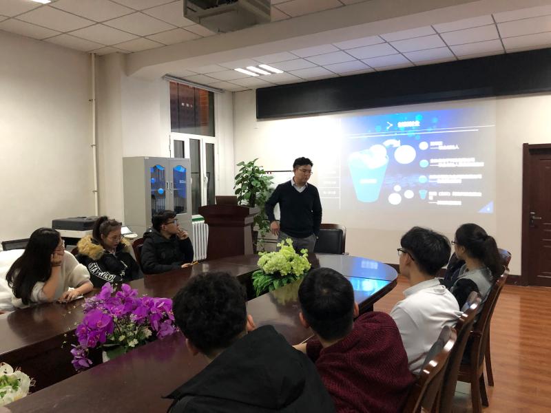 会议开始之前,霍睿老师向来参与本次座谈会的同学们表示热烈欢迎,并向在座的同学介绍了获得吉林大学2019年创新人才推免研究生资格的郭彦波同学,与会同学纷纷表示了热烈的欢迎。本次座谈会主要分为六个主题。首先是个人经历,郭彦波通过创业经历、创业荣誉和个人奖项等方面的介绍,让同学们更加深入的了解了自己;第二个主题是互联网+医疗,郭彦波讲述了如今存在的医疗困境,并向大家介绍了大数据在医疗卫生行业的应用及目前存在的缺点,从而引出目前互联网+环境下,互联网和医疗卫生事业相结合的前景;第三个主题是AI与医疗,郭彦波详细生动地介绍了人工智能和未来医疗事业相结合所存在的可能性以及相关的应用领域,谈到了将AI应用到医疗领域的美好前景的认可和憧憬。随后,郭彦波同学通过形象的描述向大家阐述了什么是区域链以及区域链的现状,并且和人工智能行业相联系,预测了区域链的未来发展;在第五个主题大学成长中,郭彦波同学向在座的同学们描绘了自己心中的大学生活,用自己的亲身经历引导同学们思考自己应该怎样度过大学,告诉同学们要以学业为本,在保证学业的前提下积极参加社团活动,增加实习经历,养成独立思考的习惯。同学们在郭彦波同学的引导下陷入沉思。在最后一个主题专业展望中,他向同学们讲解了专业的前景,并送给了同学们十六字寄语:嘉言懿行,知行合一,坚如磐石,万物不侵。同学们都非常感谢郭彦波同学精彩且生动形象的讲解,不约而同的为他鼓掌致谢。在讲座的最后,郭彦波同学特意留下来为同学们进行专业前景和个人发展相关的答疑。在郭彦波同学结合自己经历的讲解下同学们都扫清了疑惑,也找到了自己的发展方向。郭彦波同学还特意嘱咐了同学们实习时的注意事项,并给同学们留了联系方式,告诉同学们在以后的学习生活中有疑问都可以用向他询问,这也让同学们对郭彦波同学倍感亲切。