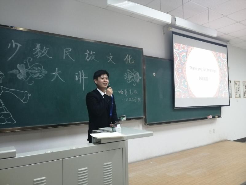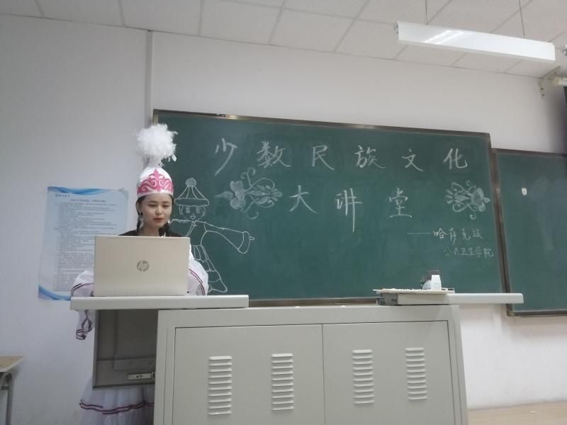拉再提同学首先为在场的同学们详细介绍了哈萨克族的语言文字、传统建筑服饰、传统美食、器乐歌舞、传统民族节日等。在场的同学都对哈萨克族产生了浓厚的兴趣,也对这个民族有了初步的了解。拉再提同学告诉大家,“哈萨克”一词意为“白天鹅”,体态优雅高洁的白天鹅在哈萨克人心中是自由、美丽、美好的象征,同时也是青春、爱情以及幸福的象征。哈萨克族人正如他们的族名一样热情奔放、自由洒脱。通过拉再提的讲述,大家了解到,哈萨克族人民在其漫长悠久的历史进程中创造和发展的许多源远流长、丰富多彩的民间文学,以及丰富的餐桌,华美的服饰,简洁的建筑等。除此之外,拉再提同学还现场演唱了哈萨克族的民族歌曲,获得了观众们的热烈掌声。