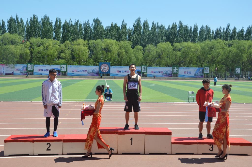 2015级放射医学专业王兆丰同学代表学院参加了吉林大学第五十八届运动会学男组跳远比赛,并一举夺得第一名的好成绩,为学院争得了一枚宝贵的金牌。