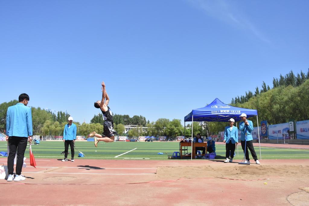 5月23日上午八点整,跳远运动员完成检录后,到达了比赛地点,熟悉场地并进行试跳。比赛正式开始后,运动员们摩拳擦掌,不断蓄力、调整,每一次起跳都是对自我的突破。预赛的三次跳远结束后,王兆丰同学以5.89米的优秀成绩,以除体育学院参赛学生外第一名的成绩挺进决赛。决赛中,王兆丰同学虽然未能突破自己的最好成绩,但依旧保持领先。最终,他凭借5.89米的优秀成绩斩获了男子学生组跳远冠军。