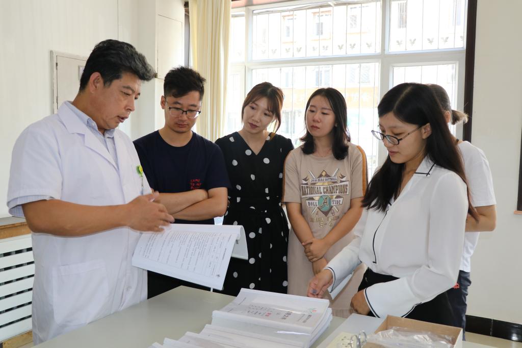 社会实践团队前往通辽市中心血站,就“无偿献血健康理念的普及在健康扶贫工程中的作用”等课题进行深入交流。师生们首先介绍了在历年暑期社会实践过程中积累的健康扶贫经验,展示了以问卷调查、基层走访、健康义诊等活动形式为主的健康宣传方式,详细说明了百姓对“无偿献血健康理念”的“知、信、行”了解程度在调研问卷中的体现和数据后期处理、分析等方面内容。
