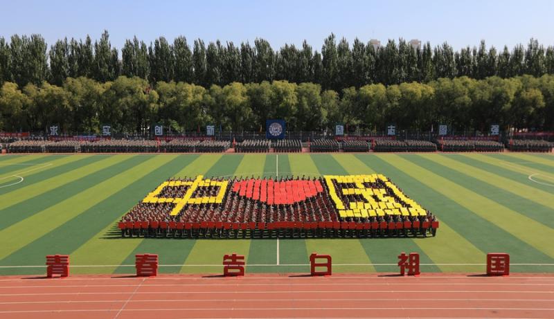 随后,六营参与的格斗表演再一次令众人为之赞叹。一拳一式,铿锵有力,一起一落,势如破竹,强军精神在一声声强音中展现。在表演的最后,格斗方队用红黄翻板摆出了“吉林大学”、“1949”、“2019”、“70”、“中国”等造型,他们表演流畅,毫无失误,用心为祖国的七十周年华诞献礼。