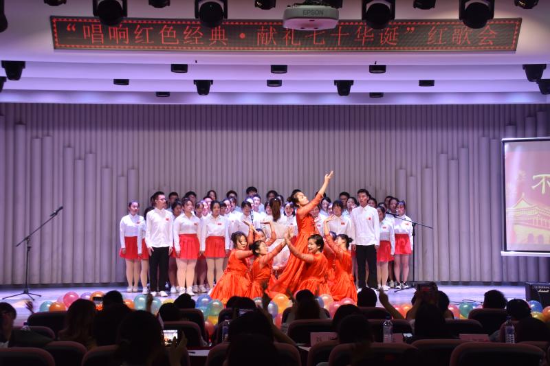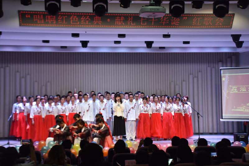 于中心校区音乐厅举办了“唱响红色经典·献礼七十华诞”红歌会。