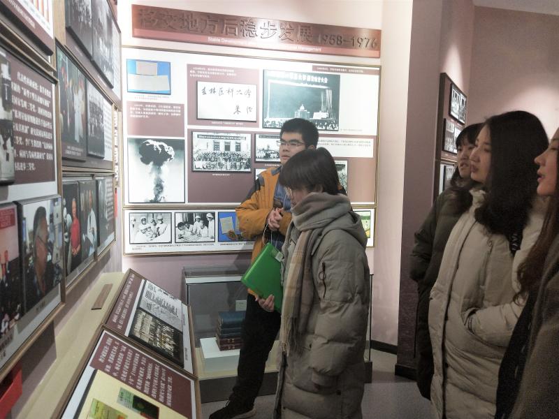 首先,同学们跟随李娴丽的步伐参观了展馆一层的白求恩医科大学校史馆。她向同学们介绍了建校功勋和历任校领导,丰富详实的讲解让同学们充分认识到建校过程中的艰难险阻,更能体会到如今辉煌成就的来之不易。如今的吉林大学白求恩医学部日益壮大,在教育和科研等方面都颇有建树,始终坚持“不忘初心,牢记使命”的信条,每年都组织学生重回河北唐县做志愿医疗服务,用实际行动践行誓言。