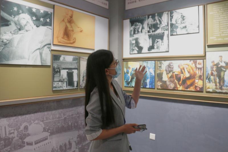 首先,进入一楼展厅后,霍睿老师为同学们介绍了老白校的历史发展脉络,详实的讲解让同学们充分认识到了创校之艰、建校之难。葛公村白求恩学校旧址所在地的微缩模型,让同学们知晓了前辈学习、生活和工作环境的条件艰苦;白银坨老白校学子遇难群雕像,让同学们不由得为这些鲜活生命逝去感到惋惜,深刻认识到如今成就的来之不易。从晋察冀军区卫生学校,到白求恩医科大学,再到中国人民解放军第一军医大学,再至如今的吉林大学白求恩医学部,老白校数次更名,白求恩精神得以不断发扬和传承,高举的旗帜依旧鲜红如初。