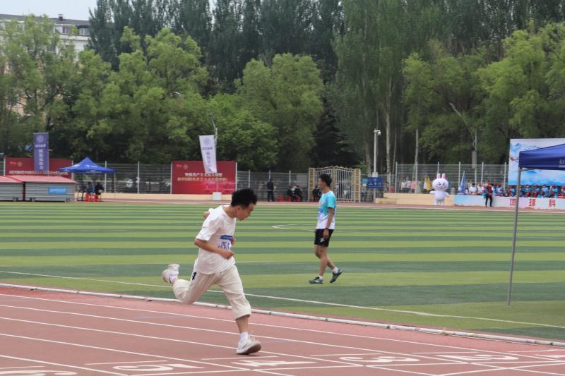 两位运动员也开始了比赛。在发令员一声枪响后,跑道上的运动员们像离弦的箭一样冲了出去,只见运动员们咬紧牙关,双眼紧紧盯着前方,不断提速,用尽全力冲向终点。即使短暂落在后面,他们也没有放弃,依然奋力追赶。虽然两位运动员最终没有晋级,但其拼搏向上的体育精神仍然是值得所有同学学习的。
