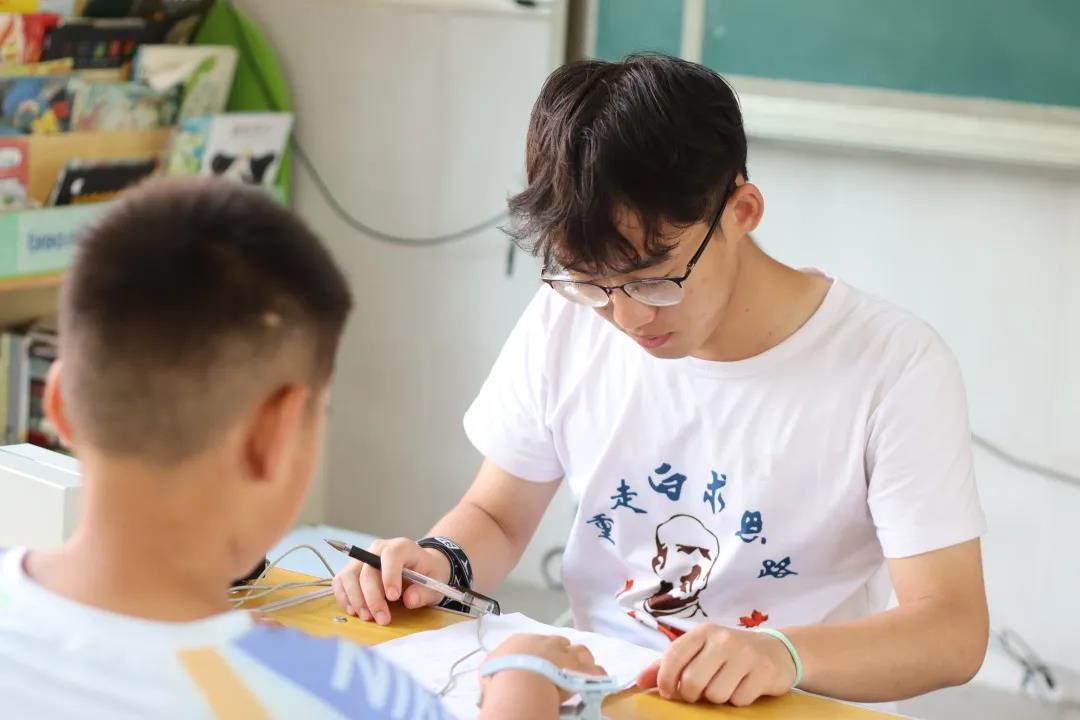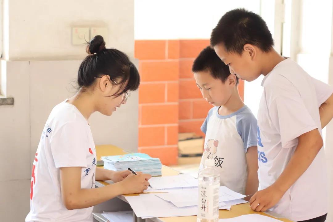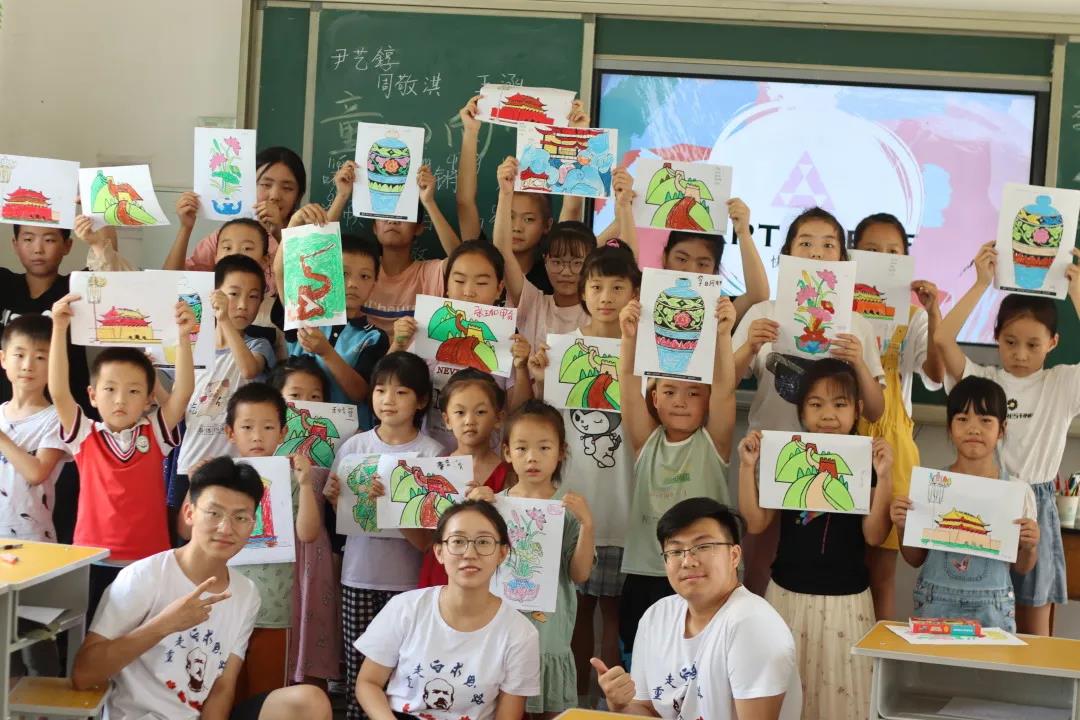 党委副书记兼副院长刘金超到达葛公村小学看望志愿者们。刘书记和志愿者们一同生活,深刻体会了志愿者们生活环境的艰苦。刘书记此行鼓舞了各位志愿者,志愿者们今后的支教活动更加满腔热忱。在两天暴雨天气的休整之后,我们的课程又继续了。孩子们毫不吝啬表达自己的想念,珍惜着每一秒上课时间。“请党放心,强国有我”,这节课在孩子们和志愿者的朗诵声中开始。志愿者们给孩子们看了《请党放心,强国有我》的朗诵视频。孩子们深受感悟。接下来,志愿者分发信纸,让孩子们感党恩,对党、对自己、对老师写下自己心里所想,抒发所感。在这节课上,孩子们拿起油画棒,几人一组,随心所欲填涂面前的空白简笔画。每完成一幅作品,孩子们快乐地拿起自己的作品和老师们合照。