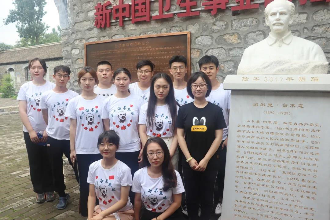 辅导员苏国范老师、冷贺璇老师、刘心怡老师的引导下,志愿者们在柯棣华广场追思前辈,走进白求恩学校旧址接受教育。在白求恩曾经生活、战斗过的地方,志愿者们静静地感受着,昔日的教室、手术室、救亡室,逐渐变得立体和清晰。狭小的空间、昏暗的光线,即使翻修之后,也难掩前辈们艰苦奋斗的痕迹和笃定求学的身影。在白求恩学校旧址,志愿者们见识了当年白求恩医生设计、使用过的手术器具复制品“卢沟桥”,看到那些简陋的手术台、破败的旧桌椅,深切地感受到了当年医务工作者们生活和工作环境的艰苦,并被白求恩医生艰苦奋斗、无私奉献的革命精神所深深感动。