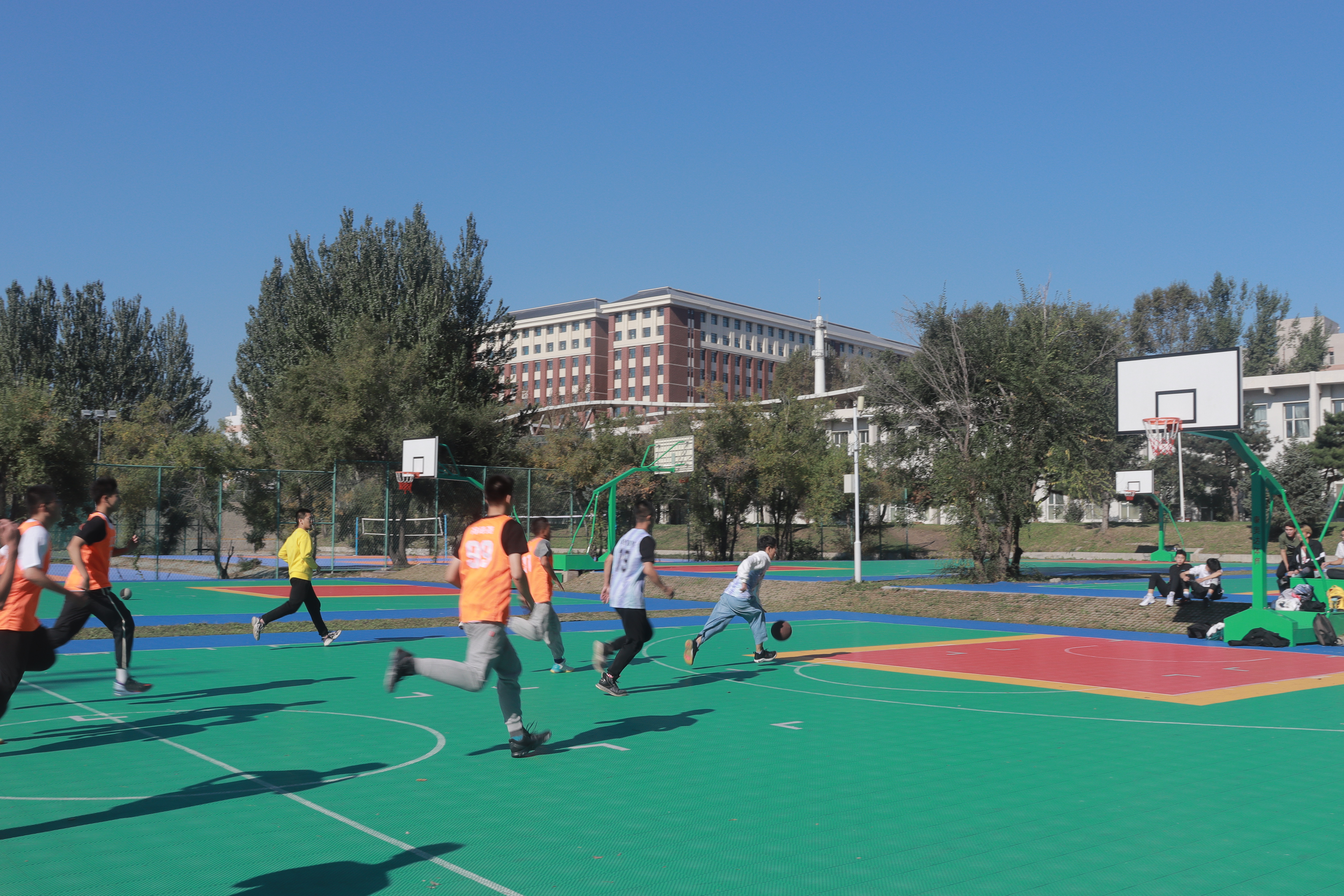 团学组织体育部在中心校区篮球场成功举办了2021级新生篮球赛。比赛双方分别是由张翼、巢王哲等2021级同学组成的新生联队,与由杨帅、孙锡昱等2019级、2020级同学组成的高年级联队。