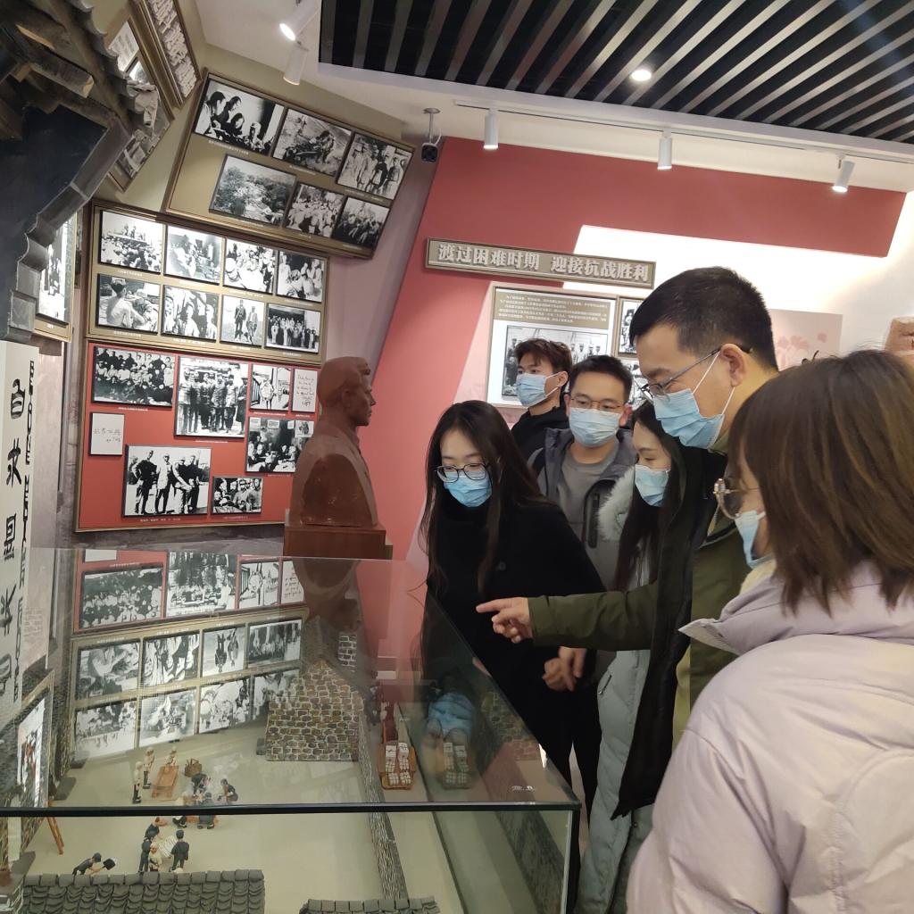 在讲解员的带领下,同志们跨过历史长河,领略先辈们舍身为共产主义奋斗的不屈精神。展馆第一层——医学部校史馆墙上展示着为医学事业做出突出贡献的历代白医传承者的肖像,展示了建校以来我校优秀的医生、导师和科研工作者所取得的科研成就。接着是位于纪念馆第二层记录白求恩生平经历的白求恩纪念馆,同志们怀着无比激动的心情,认真聆听讲解员讲述白求恩老先生是如何“毫不利己,专门利人”地投身于中国人民解放事业并战斗一生的光辉事迹。在观看了大量珍贵历史照片、文献资料和实物后,同志们感触良多,立志要为中国社会主义现代化建设做出自己的贡献。